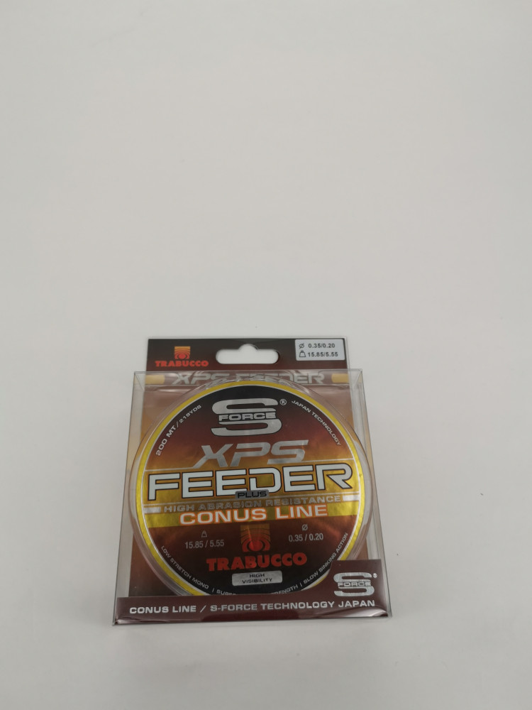 Trabucco najnovší, mimoriadne inovatívny produkt, XPS Feeder Plus Conus Line, prináša riešenie starého problému feederových a boilies rybárov. Jeho zvláštnosťou je, že posledných 10 metrov 200 metrovej cievky končí silnejším, mimoriadne odolným vláknom ako „hlavný vlasec“. Zhrubnutie sa dosahuje postupne na 5-metrovom úseku (napr. 10 metrov 0,35 mm „šnúra na odhadzovanie“ 5 metrov kónus – 185 metrov hlavný vlasec 0,22 mm). Vďaka tomuto geniálnemu nápadu sa už nemusíte trápiť s odhadzovacími náväzcami, hádzanie extrémne veľkých košíkov a oloviek môžete vykonávať s najväčšou bezpečnosťou. S týmto vlascom na ďaleké hody sa nemusíte báť, že sa pri hode vlasec prilepí na špičku feederového prútu, a v budúcnosti sa nebudete musieť obávať ani nepríjemných zvukov a opotrebovania očiek uzlami odhadzovacích náväzcov. Odhadzovací úsek nielen pomáha dosahovať extrémne vzdialenosti, ale poskytuje používateľovi spoľahlivé rezervy aj v kritickej fáze zdolávania, tesne pred podberaním.