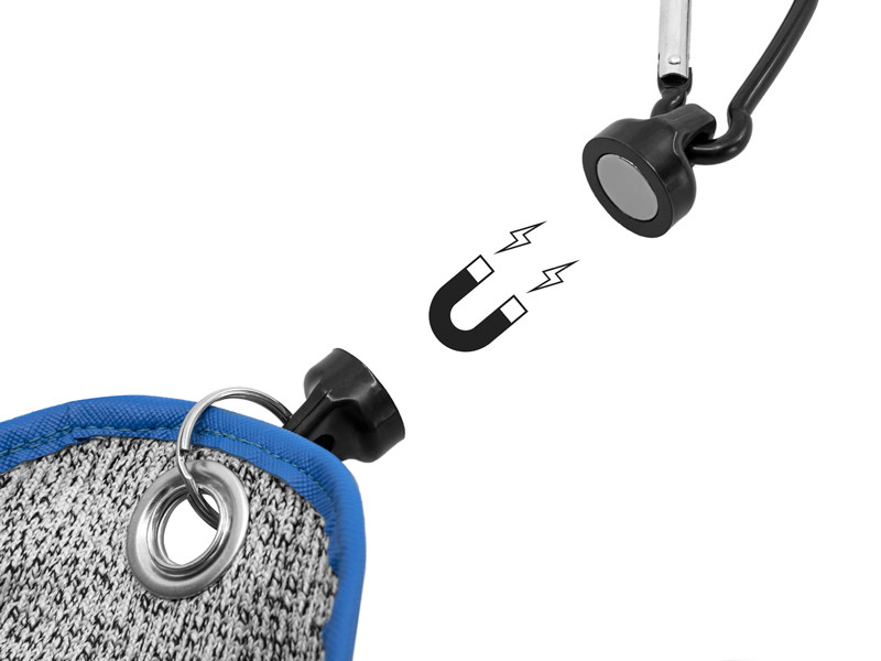 Celý povrch rukavice je pogumovaný hrubou vrstvou, aby odolal zubom aj tých najväčších sladkovodných dravcov. Pre urýchlenie používania je rukavica vybavená magnetom, ktorý je súčasťou balenia. Jedna polovica magnetu sa pripevní na nohavice alebo bok tašky, zatiaľ čo druhá zostane priamo na rukavici. Počas používania stačí vsunúť ruku do rukavice, pritlačiť a magnet sa sám uvoľní. Balenie obsahuje jednu rukavicu pre pravákov!