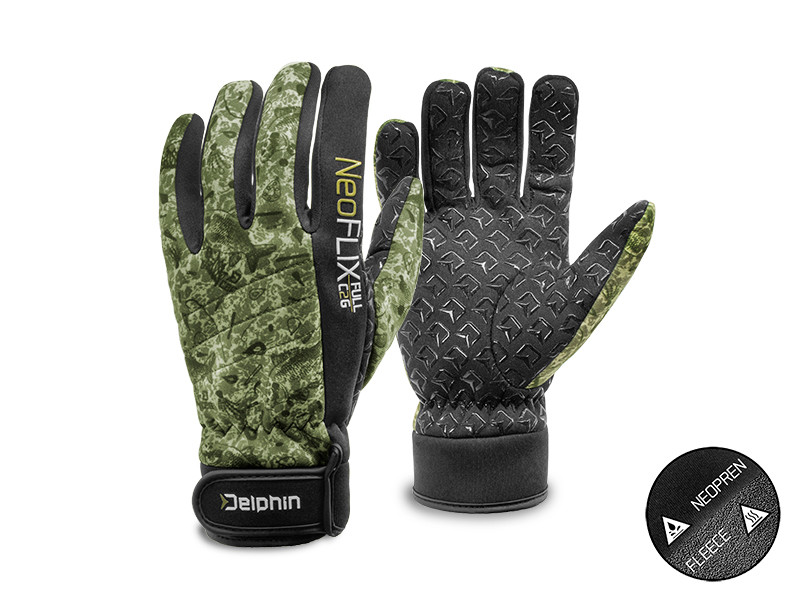 Na rozdiel od štandardných neoprénových rukavíc majú tieto rukavice vnútro z fleecovej podšívky, ktorá posúva komfort zimného rybolovu na novú úroveň. Veľkou výhodou je aj protišmykový povrch na dlani, ktorý je vybavený pogumovanou vrstvou zdobenou logami značky Delphin.