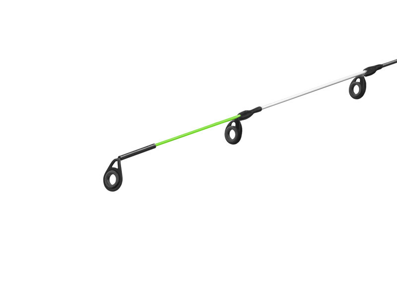 Blank prúta dostal preformované, dvojstopé očká s SIC vložkami, ktoré vynikajúco vedú šnúru a zároveň zabraňujú zamotaniu počas nahadzovania. Čierna farba očiek, ako aj matný blank prúta a korková rukoväť vytvárajú športovo-elegantný dizajn, ktorý sme doplnili sviežymi bielymi a zelenými prvkami.