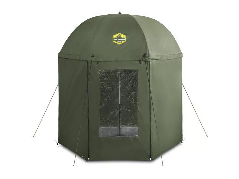 Vďaka predĺženej bočnej stene po celom obvode budete chránení zo všetkých strán pred nepriaznivými poveternostnými podmienkami. Na bočnej stene sa nachádza dvere, ktoré sú vybavené kvalitným zipsom. Okrem toho sa na dverách nachádza aj priehľadné plastové okno, ktoré vám umožní vidieť rybárske prúty aj pod dáždnikom v daždi.