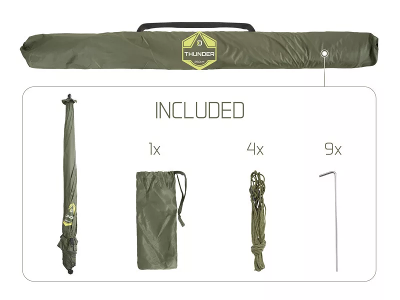 Dáždnik Delphin THUNDER FullWALL s plne uzatvárateľnou bočnou stenou je ideálnou voľbou do drsného počasia počas kratších rybárskych výletov.