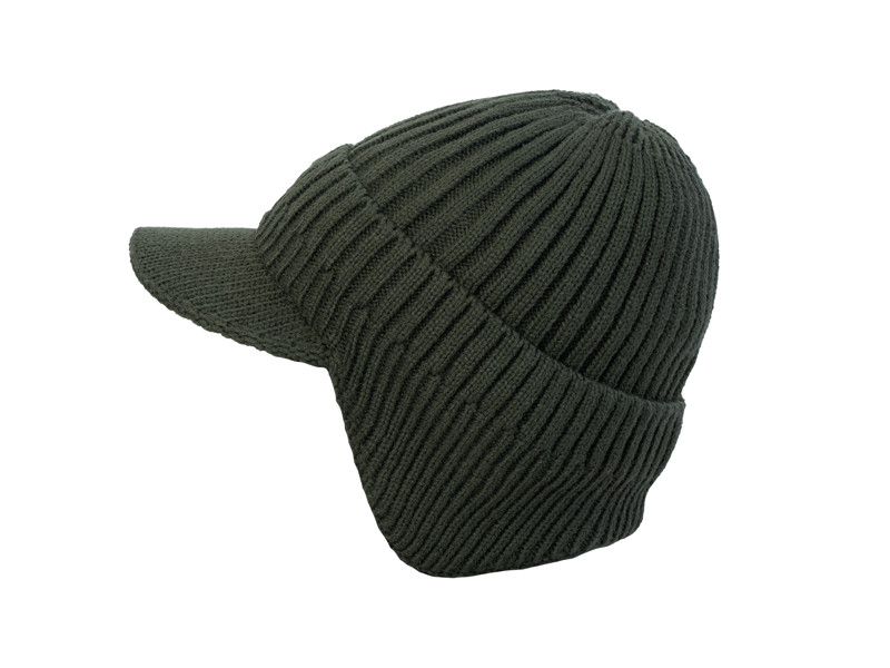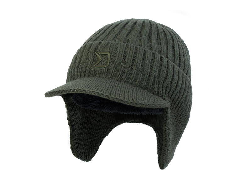 Vonkajší tmavozelený materiál je pružný a prispôsobivý, takže čiapka má univerzálnu veľkosť. Predná časť je vybavená pevnou strieškou, ktorá chráni oči a tvár pred slnečným žiarením, ako aj pred dažďom a snehom.