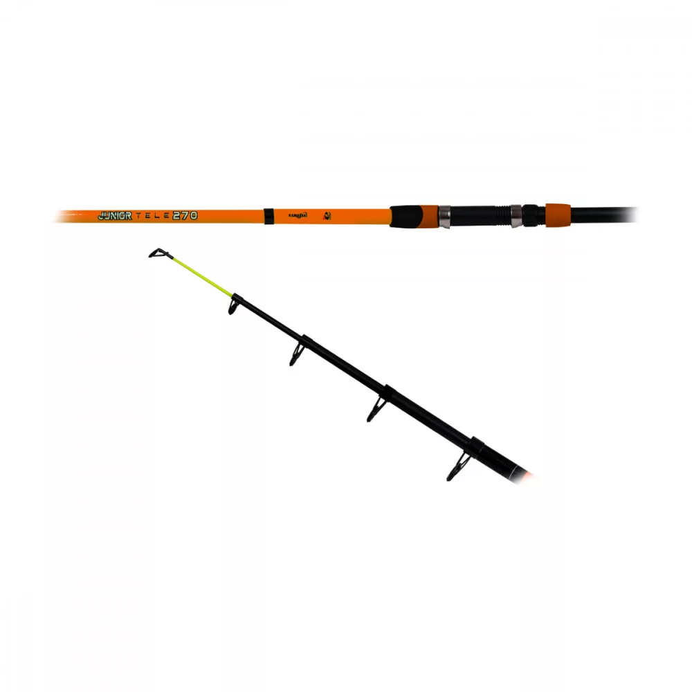 Kamasaki Junior teleskopický rybársky prút - Séria Junior je masívny, odolný teleskopický rybársky prút, ktorý vďaka modernej kompozitnej technológii použitej pri výrobe dobre znáša aj ťažké podmienky. Jeho transportná dĺžka je extrémne priaznivá, pohybuje sa medzi 44-57 cm v závislosti od veľkosti, takže ponúka super alternatívu aj na cestovanie.