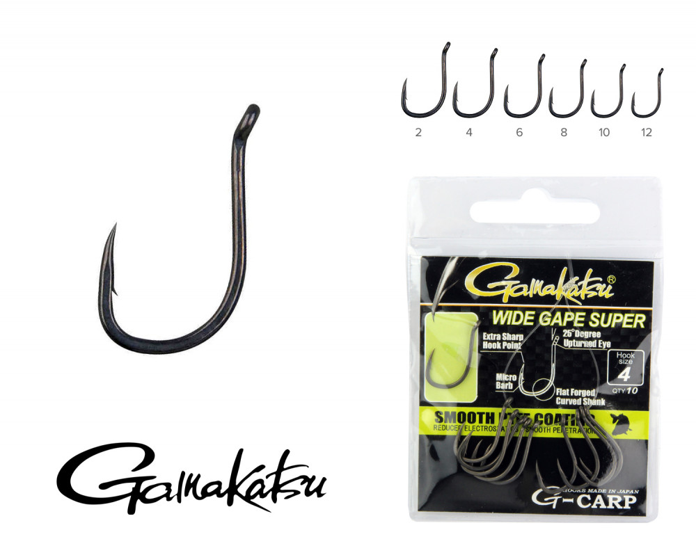 Gamakatsu G-Carp Wide Gape Super Čierny 10 10ks/balenie S očkom Mikro protihrot Háčik na boilies