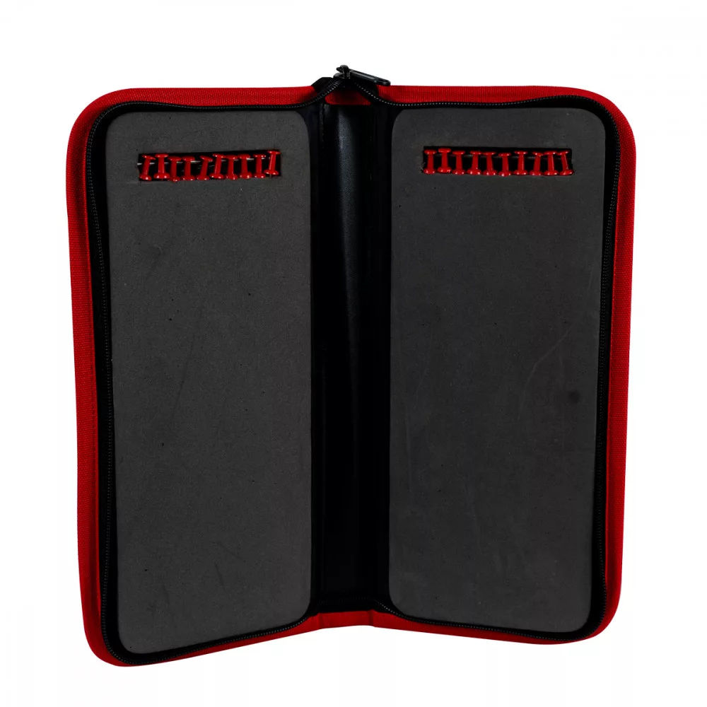 Carp Expert taška na náväzce - Vystužený dizajn, vonkajší povrch z odolného materiálu, s praktickým zipsom. Po otvorení sa obe strany dajú použiť na bezpečné uloženie hotových náväzcov. K produktu je dodávaných 10-10 špendlíkov na každú stranu. Háčiky treba len zavesiť do na to určenej časti a potom upevniť koncový úchyt pomocou špendlíkov. Jednoduché, no praktické riešenie.