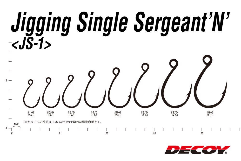 Decoy JS-1 Jigging Single Seargent N #5/0 Füles Szakállas Egyágú Ragadozóhalas Horog 4db
