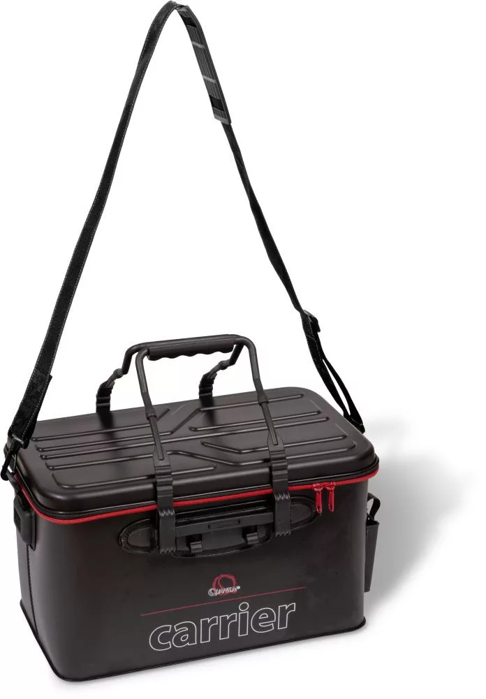 Vonkajší materiál je pevný EVA, veľmi flexibilný, dokonale sa zmestí kdekoľvek. Vodotesný a ľahko umývateľný vonkajší obal robí z Q-Carrier nenahraditeľného spoločníka na brehu vody. Jeho pevná vrchná časť presahuje horný okraj a zatvára sa zipsom, čím úplne chráni obsah pred dažďom. Je vybavená ramenným popruhom a dvoma rukoväťami, vďaka čomu je vynikajúca na pobrežný aj člnový rybolov. Okrem toho má Q-Carrier na boku ešte jedno vrecko na kliešte.