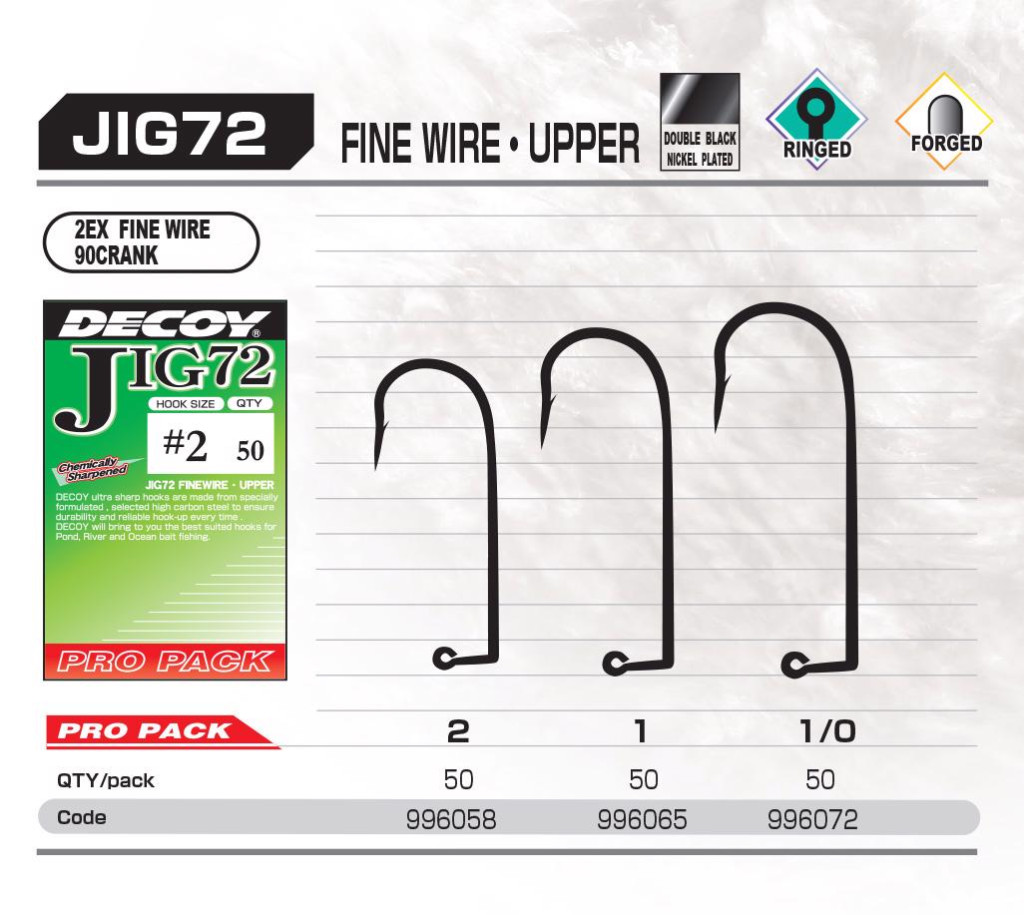 Recenzie Decoy Pro Pack Jig72 Upper Fine Wire #1 Füles Szakállas Egyágú Jig Horog 50db