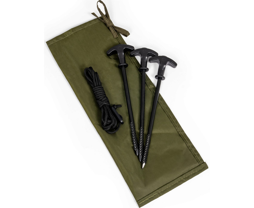 Súčasťou Brolly sú napínacie lano, upevňovacie kolíky a dva zadné upevňovacie body, ktoré poskytujú ešte väčšiu stabilitu v extrémnych podmienkach. Vďaka pripraveným upevňovacím bodom pre bočné oporné tyče (tyče nie sú súčasťou balenia) je možné dáždnik ďalej rozšíriť. To všetko je postavené na ľahkom, no robustnom ráme zo sklenených vlákien, ktorý váži len 3,7 kg, takže sa ľahko prenáša v priloženej nylonovej úložnej taške.