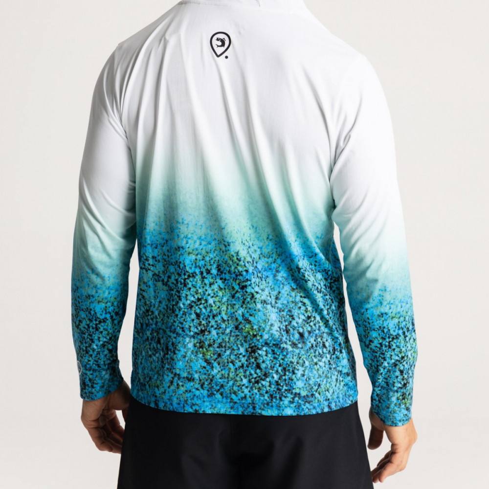 Toto tričko s dlhými rukávmi a kapucňou je príjemné na dotyk a vynikajúce takmer na akúkoľvek voľnočasovú aktivitu aj v každodennom živote. Má rovný strih. Jeho materiál, 90% polyester a 10% elastan, je ľahký a pružný, zaisťuje pohodlný pohyb. Nezaparí sa, pretože látka v podpazuší je sieťovaná a zaisťuje dostatočnú ventiláciu. Materiál trička rýchlo odvádza pot z povrchu tela. Priedušné, rýchloschnúce. S materiálom vybaveným UPF50+ UV filtrom, ktorý charakterizuje účinnosť ochrany textílií pred UV žiarením. Čím vyššie číslo, tým lepšie chráni textílie pred škodlivými účinkami UV žiarenia. S praktickou kapucňou a jedinečným vzorom je tiež skvelou voľbou na rybolov. Ľahko sa čistí, možno prať na 30°C naruby, žehliť je zakázané.