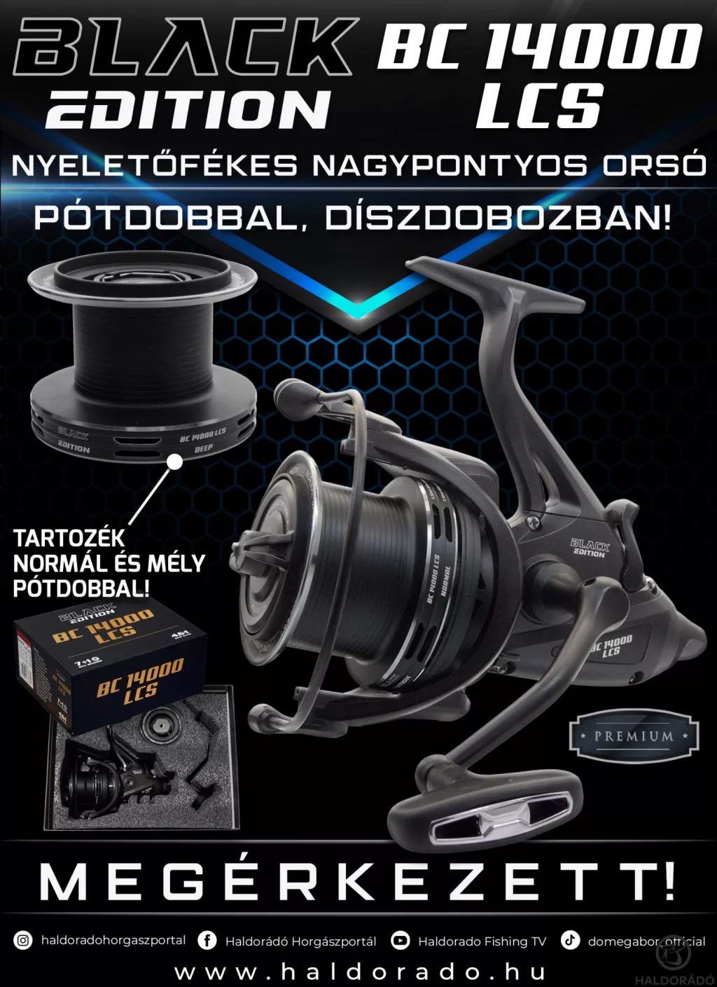 Haldorádó Black Edition BC 14000 LCS Kaprový navijak s voľnobežnou brzdou s náhradnou cievkou, v darčekovom balení