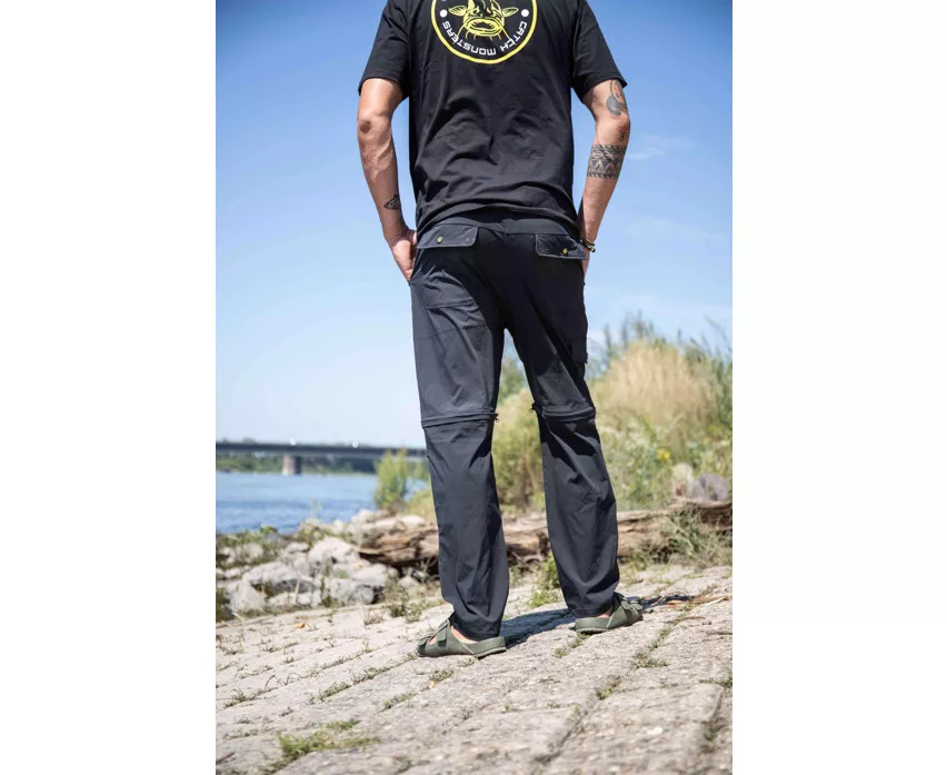 Black Cat Zip-Off Trousers sú všestranný a praktický kus oblečenia, navrhnutý špeciálne pre rybolov a outdoorové aktivity. Nohavice sa dájú jednoducho premeniť z dlhých na krátke, takže sú ideálnou voľbou pre premenlivé poveternostné podmienky – napríklad na chladné rána a teplejšie popoludnia. Systém zipsov pod kolenami umožňuje rýchlu a jednoduchú transformáciu bez nutnosti vyzliekania nohavíc.