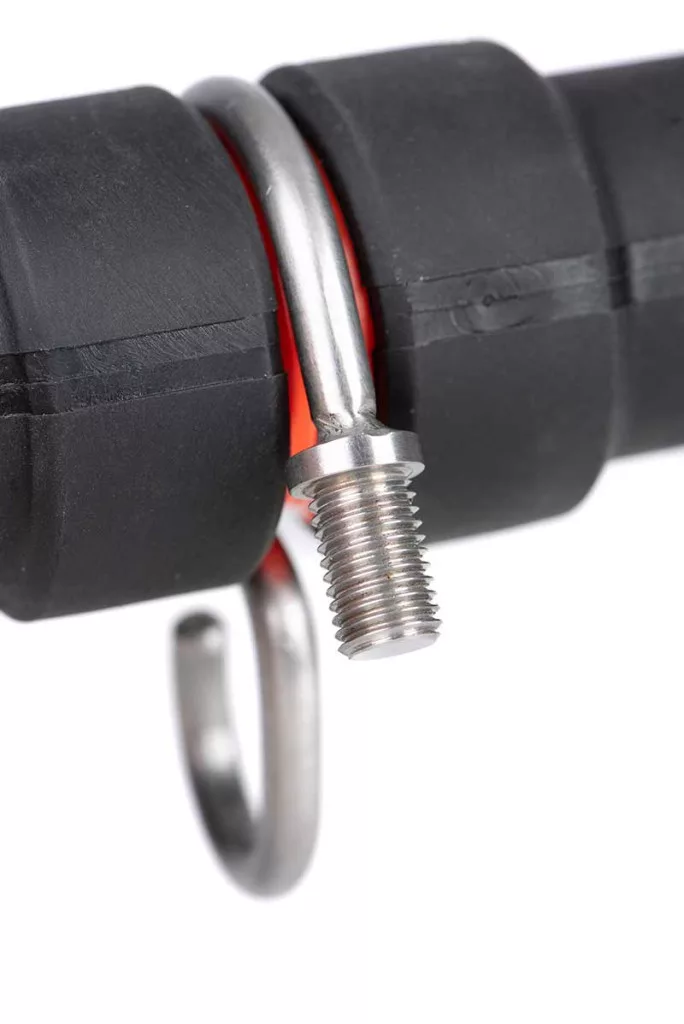 Ďalej k produktu patrí karabína z nehrdzavejúcej ocele, ktorá uľahčuje ovládanie a pohyb váhy. Tento doplnok je obzvlášť užitočný pri použití tyče na váženie spolu so zapichovacou tyčou a pri vážení dvoma osobami, čím zabezpečuje stabilný a pohodlný pracovný proces.