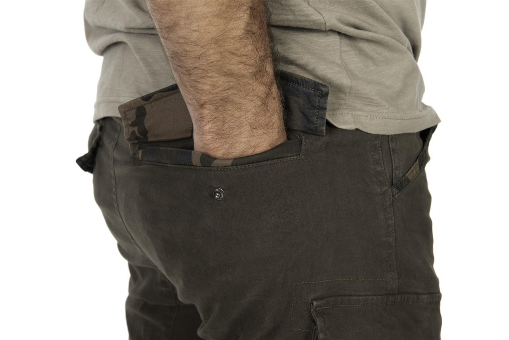 Hlavným materiálom je vysokokvalitná, mäkká bavlna, ktorá má prirodzenú priedušnosť, čím zaisťuje pohodlné nosenie aj po dlhšiu dobu. Materiál obsahuje aj elastan, ktorý poskytuje flexibilitu a voľnosť pohybu, vďaka čomu sú tieto nohavice ideálnou voľbou pre aktívne činnosti, ako je rybolov. Elastický pás prispieva k pohodlnému strihu, zatiaľ čo pútka na opasok poskytujú dodatočnú stabilitu, ak nosíte opasok.