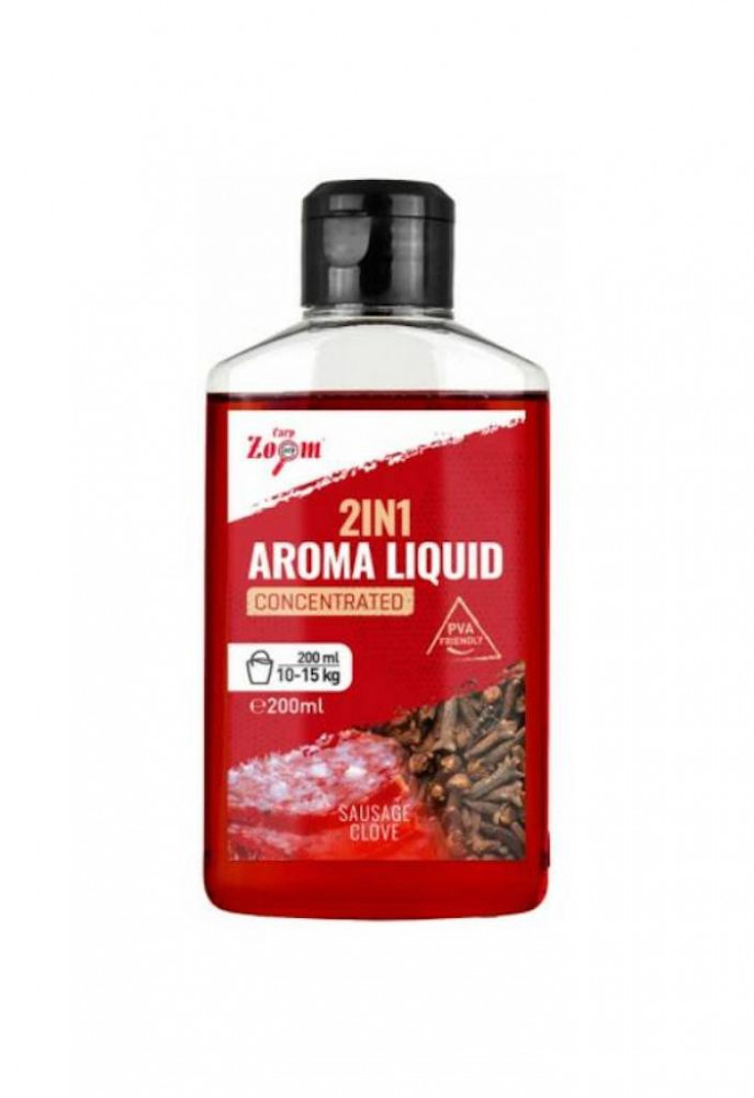2 in 1 Aroma liquid Tekutá aróma. Tekutá aróma so špeciálnou kombináciou chutí, ktorá je zložená z viacerých surovín a aróm. Intenzívne arómové zmesi môžu úspešne použiť rybári loviaci na feeder, kaprári a rybári používajúci kŕmidlá. Odporúča sa na lov kaprov, amurov a rôznych druhov bielych rýb. Na aromatizáciu 10-15 kg krmiva (zmes, semienkový mix, stickmix, method mix).