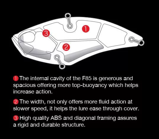 Pri návrhu Apex Vibe 85 bolo očko na uchytenie vlasca posunuté dozadu, aby sa zabránilo prekážkam vo vode. Jeho funkcia ako ostriežového magnetu je ďalej posilnená pomalým, horizontálnym, trasúcim sa pádom. Hoci má menší profil ako model 100, Apex Vibe 85 má hrubšie, robustnejšie telo, čo znamená pre rybára ďalší cenný nástroj v hre!