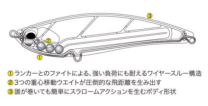 Návnada určená na pobrežný rybolov, s vynikajúcou ovládateľnosťou. Jej vysoké, ploché telo s vodou prúdiacou od hlavy k chrbtu napodobňuje pohyb slabých rýb v plytkých vodách, čím láka morského ostrieža.