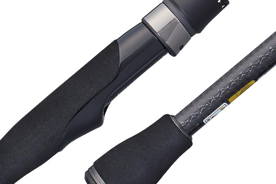 Oblasť rukoväte sme minimalizovali, čím sa znížila hmotnosť a umožnilo sa jemné ovládanie nástrah. Spoj je vysoko presná spigot ferrule, ktorá zaisťuje hladkú krivku ohybu. Dizajn konca rukoväte.