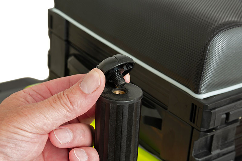 Sedadlo je vyrobené z dvojfarebného, odolného PU poťahu, ktorý je nielen pohodlný, ale aj vybavený praktickým držiakom na deličku. To je obzvlášť užitočné, ak potrebujete voľné ruky počas rybolovu. Prepravu uľahčuje ramenný popruh so štyrmi upevňovacími bodmi, takže si ho môžete vždy pohodlne vziať so sebou. Mechanizmus opierky na nohy ovládaný jednou rukou a kompaktná veľkosť uľahčujú prepravu a skladovanie, či už ho prenášate v aute alebo v ruke.