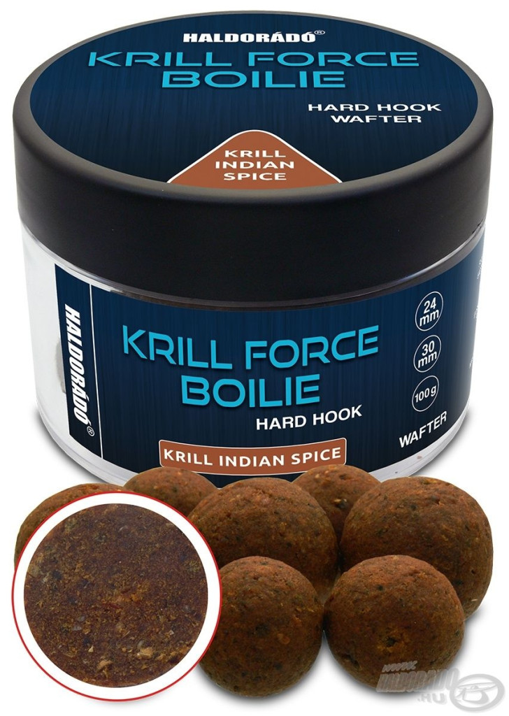 Haldorádó Krill Force Boilie Hard Hook Wafter 24, 30 mm Krill Indian Spice Nástrahové Boilies 100gr