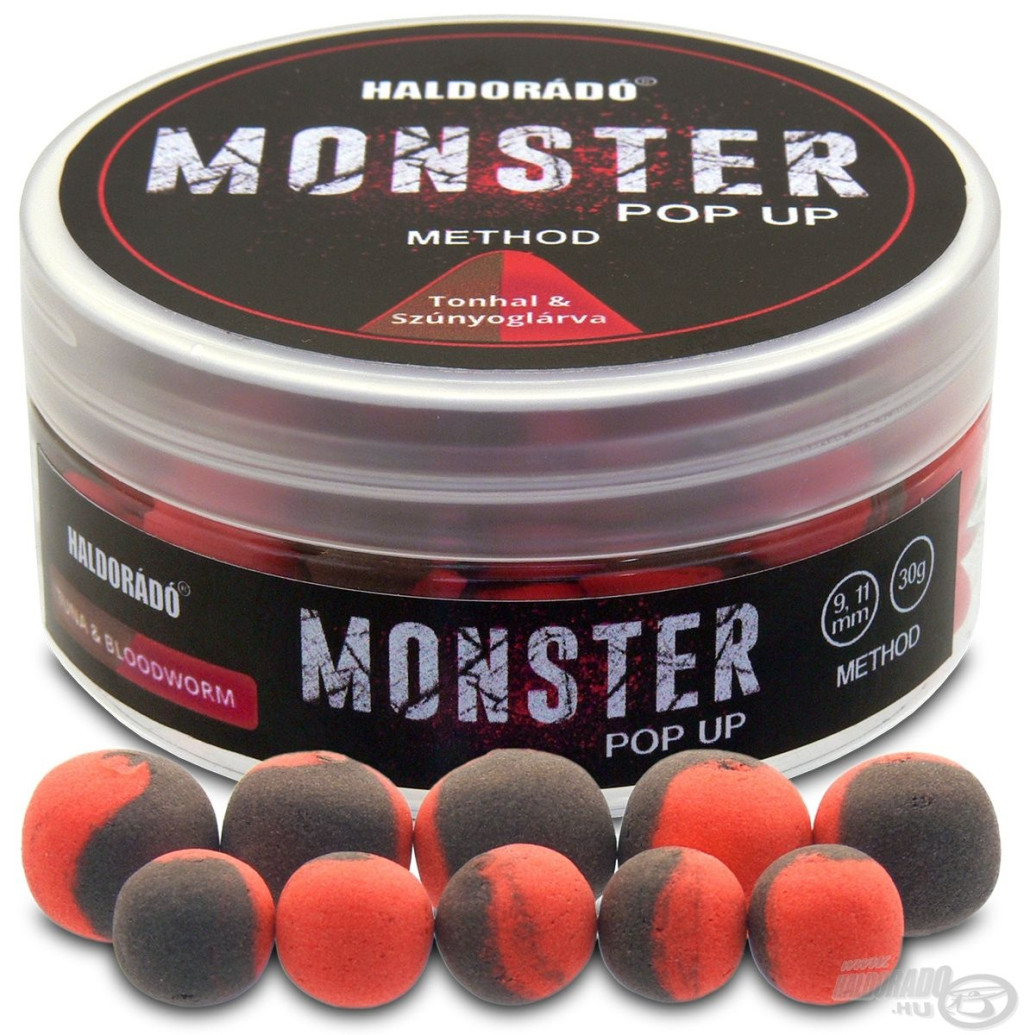 Obsah balenia: Haldorádó Monster Pop Up Method Tuniak & Komárie larvy 9-11mm Pop Up 30gr