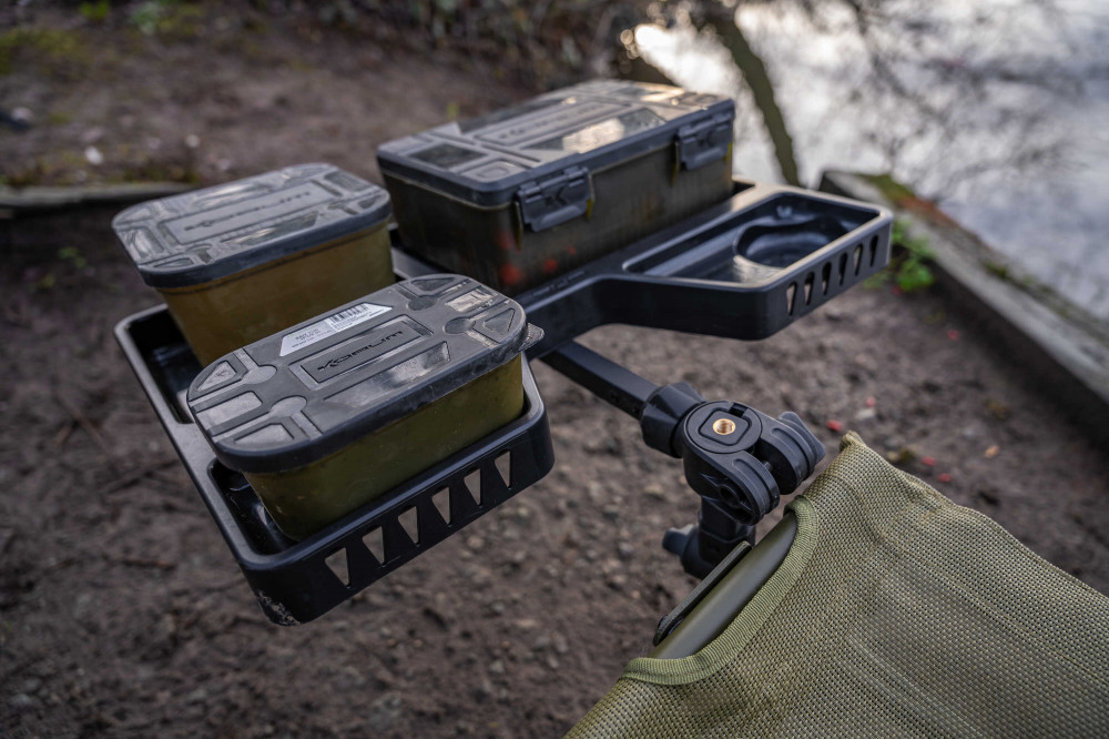 Nezávisle od nerovností terénu sa dá ľahko nastaviť do správnej polohy. Pomocou 360° otočnej hlavy môžeme bočný podnos vždy nastaviť do vodorovnej polohy na šikmých nohách stoličky. Zariadenie je možné pripevniť na stoličku pre ľahké skladovanie a prepravu. Adaptér má aj vnútorný závit, takže je možné pripojiť ďalšie závitové príslušenstvo. Upevňovacie body sú dlhšie, čo umožňuje umiestnenie viacerých doplnkov. Balenie obsahuje okrúhle vložky s priemerom 30 mm, 25 mm, 23 mm a štvorcové vložky s priemerom 23 mm.