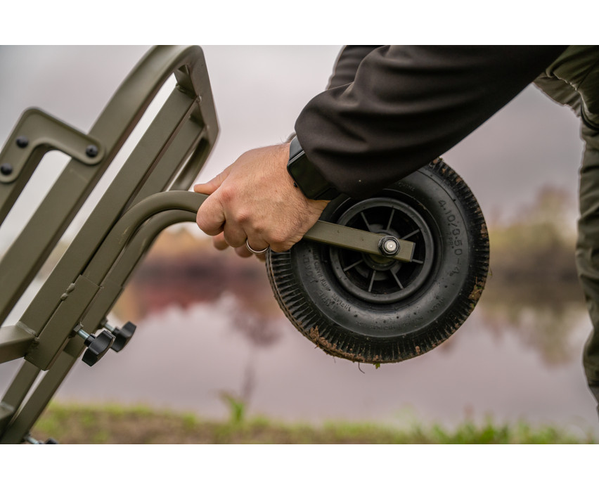 Pohodlie zvyšujú penové rukoväte, ktoré chránia ruky aj počas dlhších prepráv. Masívna, odolná pneumatika zaisťuje vynikajúcu priľnavosť na rôznych terénoch, zatiaľ čo veľká Korum noha do blata zaručuje extra stabilitu a ľahšiu manipuláciu aj na mäkkom alebo blatistom podklade.