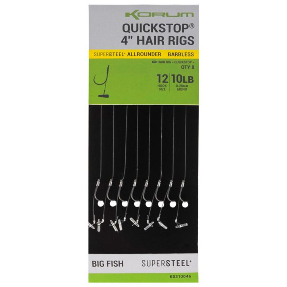 Korum Big Fish Hair Rigs W Quickstops 10cm Veľkosť 12 Monofilový predviazaný háčik s očkom a protihrotom