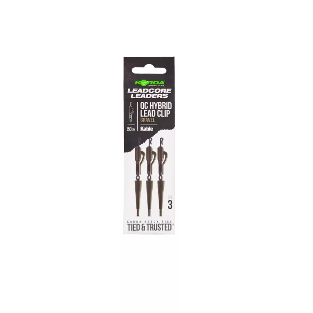Korda Kable Leadcore Leader Hybrid Lead Clip QC Swivel Gravel Bojlis Montáž 50cm 3ks