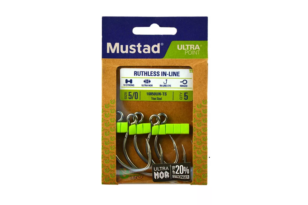 Mustad Ruthless In-Line Titan Steel 2/0 Uško, Ostnatý háčik 5ks