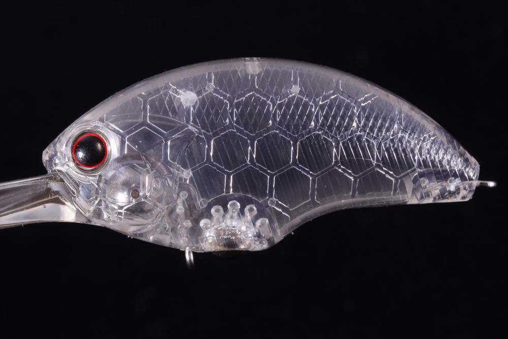 Celoročne existujú kľúčové obdobia vo väčšine vôd medzi 3 a 4 metrami hĺbky, rozsahu, ktorý nemožno ignorovať kvôli stabilnej teplote vody a hojnosti nástrahových rýb. Tento rozsah 3-4 metrov je možné dôkladne prehľadať iba rýchlo vedenými nástrahami (fast-moving lures). Crankbaity, ktoré sa zvyčajne ponoria až do 4 metrov, vyžadujú dlhú vzdialenosť navíjania, čo znamená, že často majú veľké, ťažké telo a sú vybavené pohyblivým ťažiskom (shifting center of gravity). Avšak na veľkých jazerách, počas víkendových dní, keď sa rybári sústreďujú, alebo v závislosti od veľkosti nástrahových rýb, tento typ nástrahy jednoducho nedokáže pokryť všetko. Preto sme silne cítili potrebu hlboko potápajúceho crankbaitu, ktorého veľkosť tela prekoná tradičné normy. EX-DR bol vyvinutý s cieľom mať nielen kompaktné telo, ale aj bez pohyblivého ťažiska. Opustenie pohyblivého ťažiska zvyšuje náročnosť vývoja o niekoľko úrovní, pretože musí súčasne spĺňať požiadavky na vrhaciu schopnosť a plávanie, ale výsledný výkon je nenahraditeľný. Keďže nepotrebuje koľajničky (rails) na vedenie záťaže, štíhle telo umožňuje okamžitý štart (fast start), zlepšuje mieru záberov v stop-and-go situáciách a udržiava nepretržitú akciu, ktorá provokuje zábery aj pri pomalom vedení. Všetky akčné výkony sa zlepšili, vrátane schopnosti vydržať vyššiu rýchlosť aj pri rýchlom navíjaní. Výzva dosiahnuť hmotnosť 12g bez pohyblivého ťažiska bola prekonaná a nástraha bola nastavená tak, aby dosiahla vrhaciu vzdialenosť potrebnú pre 4-metrový ponor. Telo bolo mierne zúžené na šírku, čím získalo vertikálne sploštený tvar, ktorý odoláva ťažkým podmienkam (tough conditions) a má siluetu pripomínajúcu shad (shad-like). Jeho strany sú polo-ploché (semi-flat), čo uľahčuje vytváranie vibrácií a zábleskov (flashing), oslovujúc širokú škálu ostriežov a vytvárajúc pre ne príležitosť na záber. Zrodil sa hlboko potápajúci crank, ktorý vzdoruje konvenčnej múdrosti, hladko, v okamihu dosahuje 4 metre, pričom si zachováva svoju prirodzenú akciu so shad-like živosťou, aby nalákal ťažko chytateľné ostrieže.