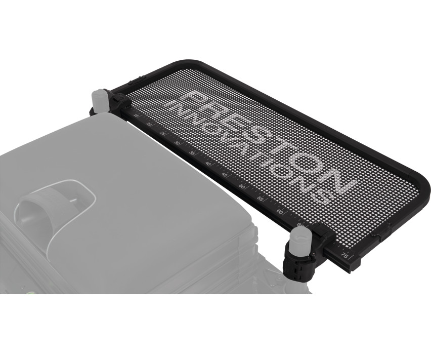 Spodná časť stolíka je vyrobená z perforovaného plechu Ventamesh, ktorý zaisťuje dostatočné vetranie okolo návnad a kŕmnych zmesí, najmä v teplom počasí. Okrem toho funguje aj ako účinný odvodňovací systém, takže sa nemusíte obávať premoknutia vybavenia počas daždivých dní. Posuvné upevňovacie kĺby umožňujú rýchle a stabilné pripojenie, zatiaľ čo kompatibilita s clonou poskytuje dodatočnú ochranu pred slnkom.