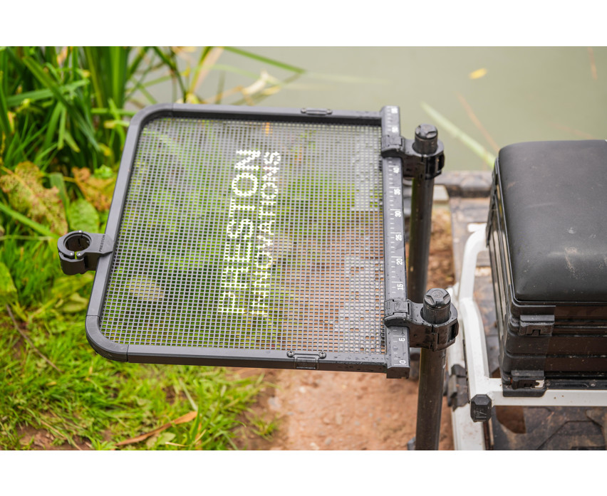 Pre rybárov používajúcich feeder techniku je nevyhnutné, aby ich vybavenie bolo rýchlo prístupné a dobre organizované. Preston Ventalite Large Side Tray slúži tomuto účelu: poskytuje stabilný, dobre vetraný, počasiu odolný pracovný povrch, ktorý sa dá spoľahlivo používať po celý rok. Perforovaná platňa pomáha odvádzať vodu, takže krmivo zostáva suché, a beznožičkový dizajn uľahčuje umiestnenie aj v stiesnených priestoroch.