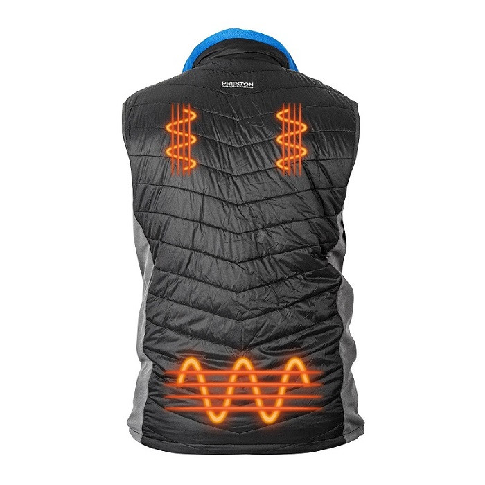 Preston Thermatech Heated Gilet Vyhrievaná vesta XL» Má 5 vyhrievacích prvkov» Vyrobené z kvalitných materiálov» S pevnými vreckami na zips» Má vnútorné vrecko na Power Banku» Z vodotesného materiálu