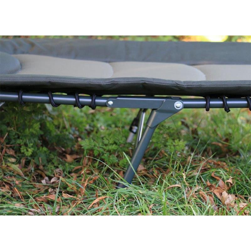 Rybárske lôžko OSMOSE s 8 nohami s rozmermi 210x100x35/45 cm poskytuje mimoriadne priestrannú plochu na ležanie, takže rybári si môžu užívať optimálne pohodlie. Hrubo polstrovaný matrac poskytuje dostatočnú oporu po celú noc, čím zaisťuje relaxačný spánok medzi zábermi.