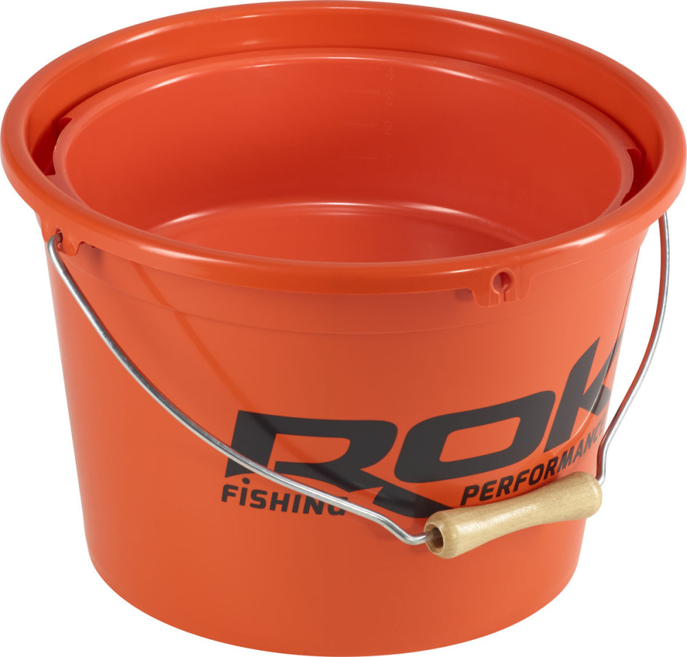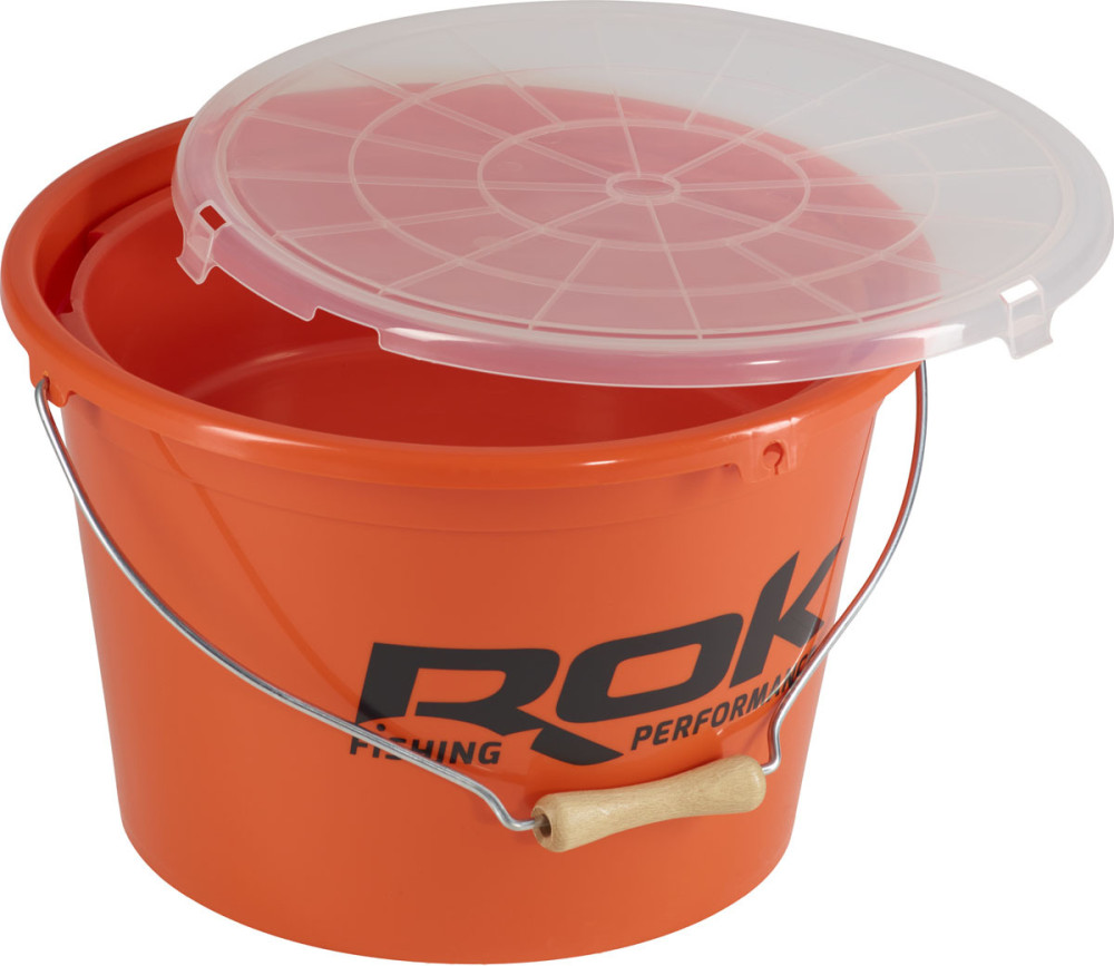 Obsah balenia: 1ks ROK 18 litrové oranžové vedro na návnadu a 5-litrová miešacia nádoba s vekom.