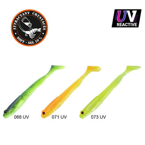 Materiál Sakura Gobygo je svetloaktívny, takže v tme fluoreskuje v závislosti od základnej farby. Chvost v tvare šupiny sa vďaka mäkkému materiálu veľmi dobre pohybuje pri klesaní aj pri navíjaní. S mimoriadne širokou ponukou farieb a veľkostí je táto gumená nástraha s jedinečnou imitáciou veľmi dobrou voľbou na zubáča a šťuku, a menšie veľkosti môžu byť skutočnými UL zázračnými zbraňami! Sakura Gobygo je už k dispozícii aj v farebných variáciách vybraných testovacími rybármi Sakura, ktoré boli prispôsobené predovšetkým zákalnosti vody. Počet nástrah v baleniach závisí od typu.